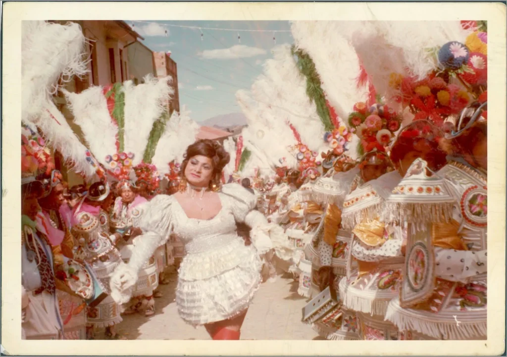 The exhibition presents a selection of extraordinary vernacular photographs from the 1960s and 1970s from the Q’iwa Archive. Under the care of Aruquipa Pérez, this archive is a depository of prints, dresses, letters, and other ephemera that belonged (and still belongs), to travesti performers of traditional popular dances in Bolivia, items that helped them define and give visibility to their identities.